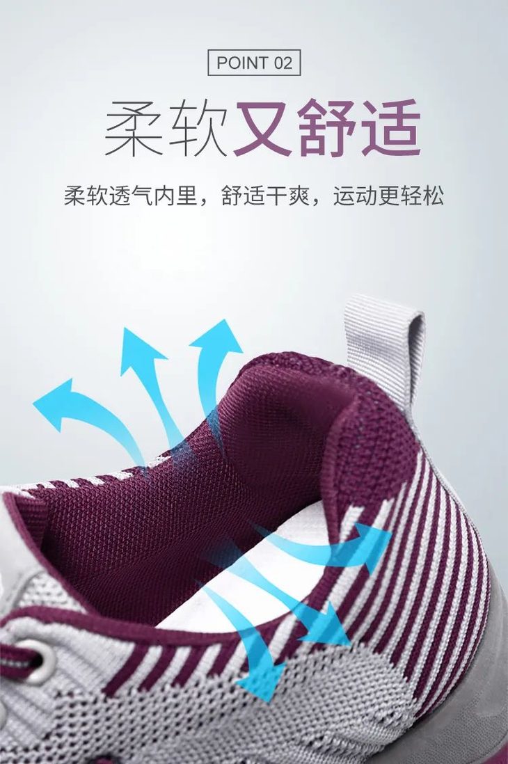 穿上之后可以很好的将鞋内的闷热排出,让双脚保持舒适干爽一整天。