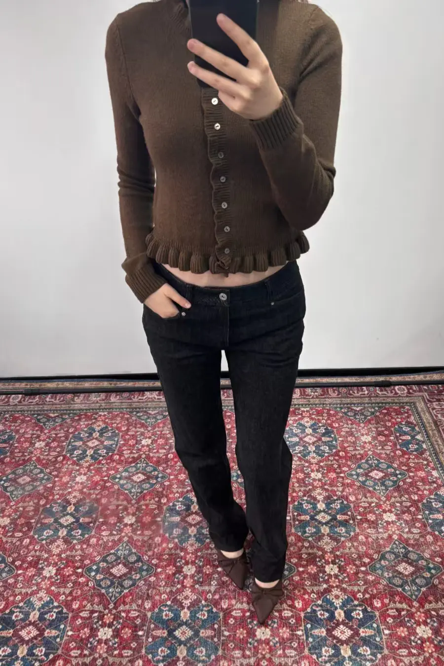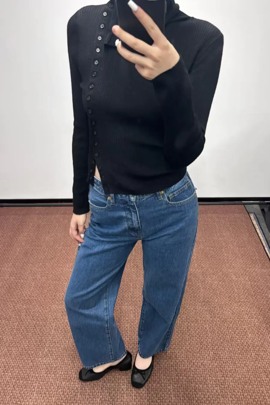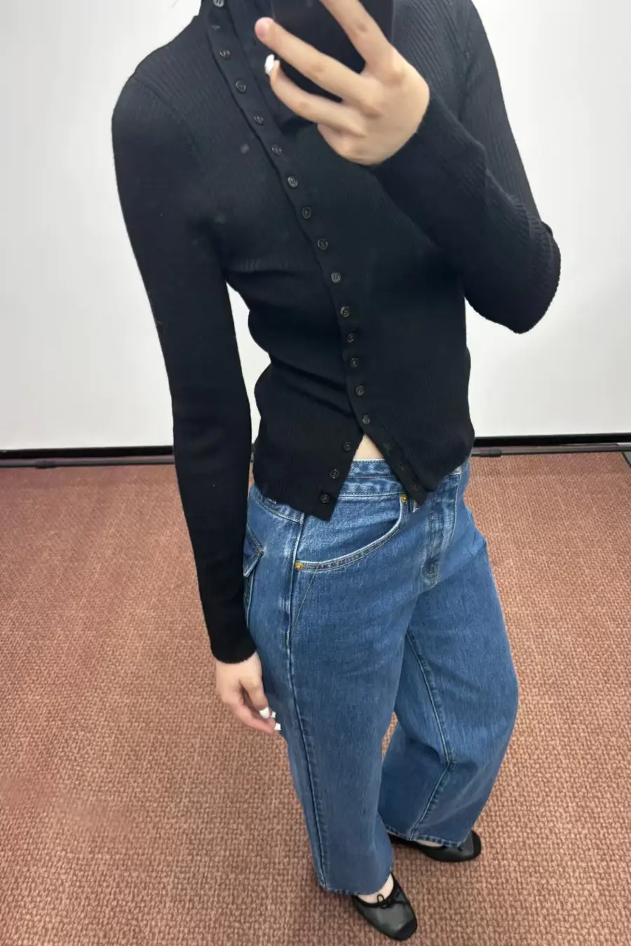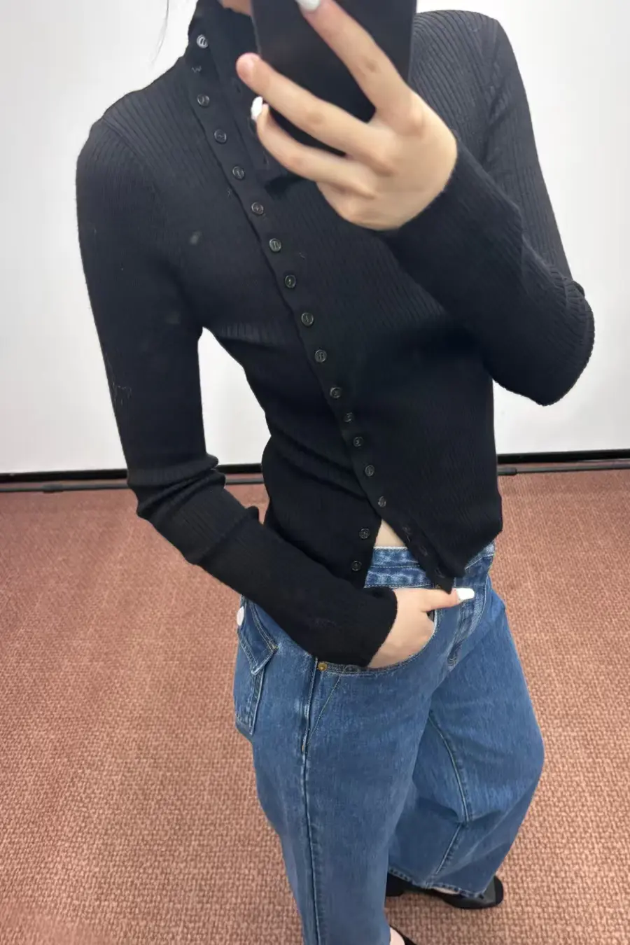 NUTH | 美利奴羊毛黑色高领斜门襟打底衫