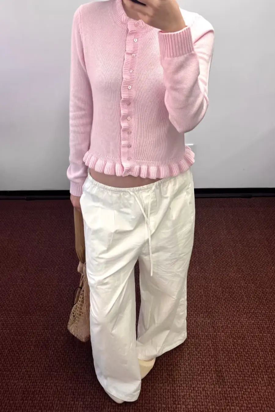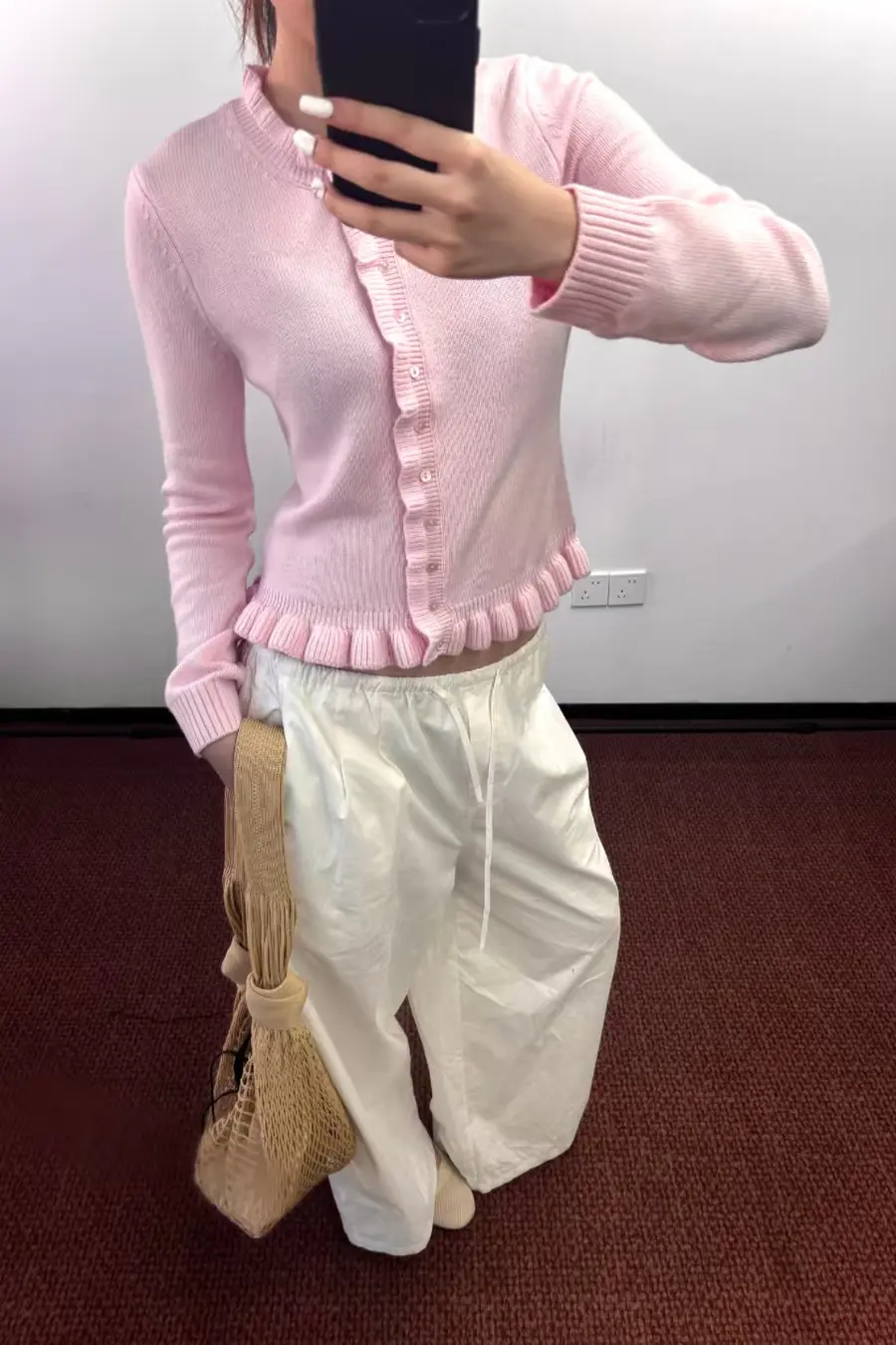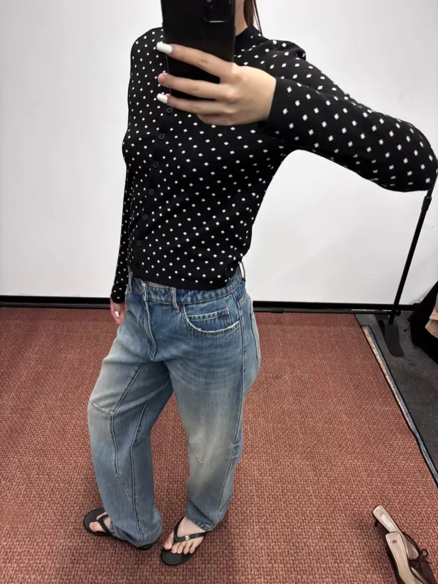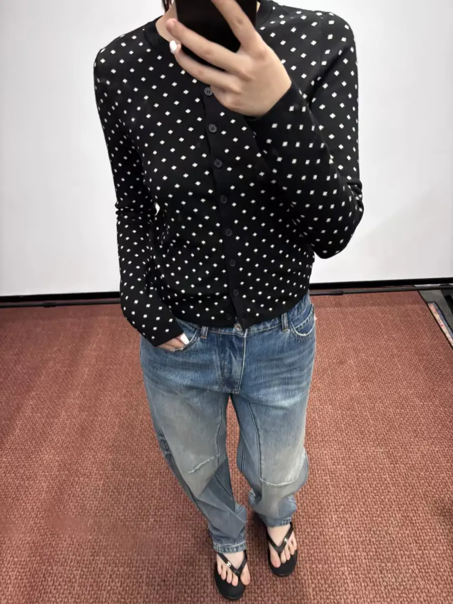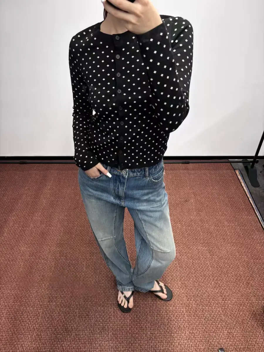 NUTH | 黑白条纹假两件v领系带宽松长袖中长款针织