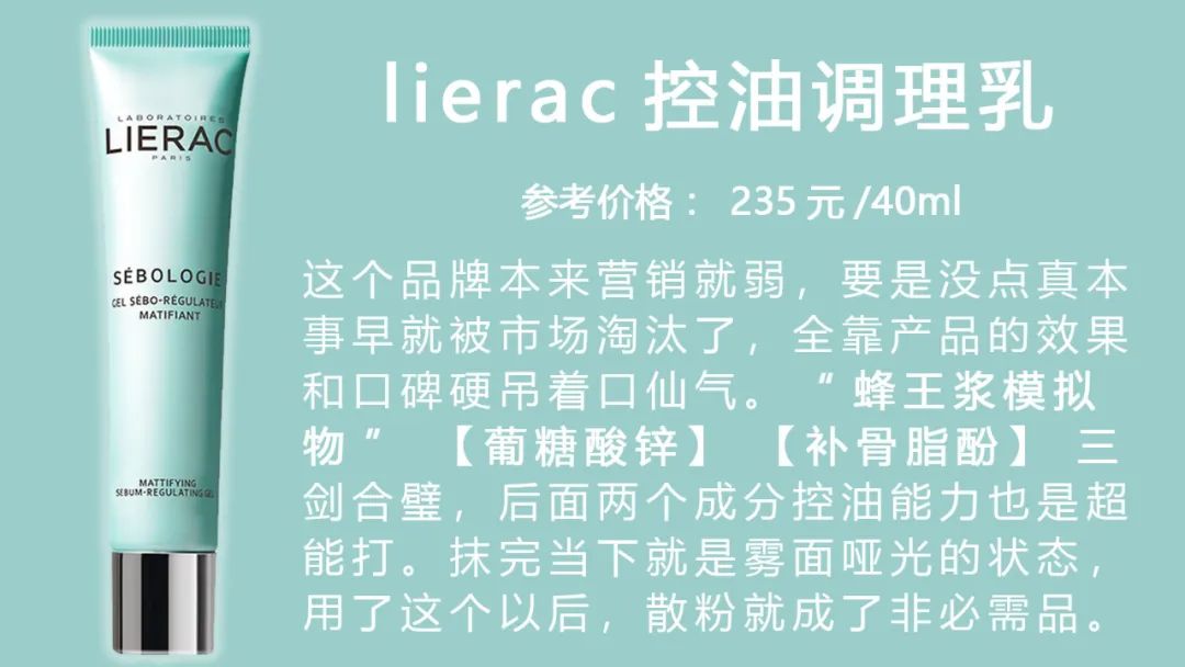 虽然我现在依然是个油皮,但在和出油作斗争的漫长岁月中,已经积累了不少控油产品挑选经验。大油皮照着下面这些成分用,皮脂腺不昏迷也得蜕层皮。