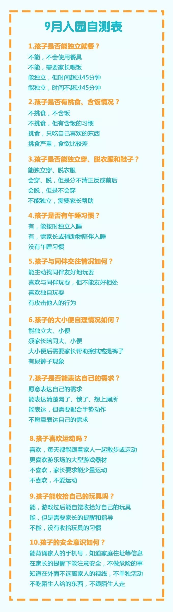 以上清单内容不是什么一板一眼的考试,而是你和孩子为上幼儿园这件事情可以做的充分准备。