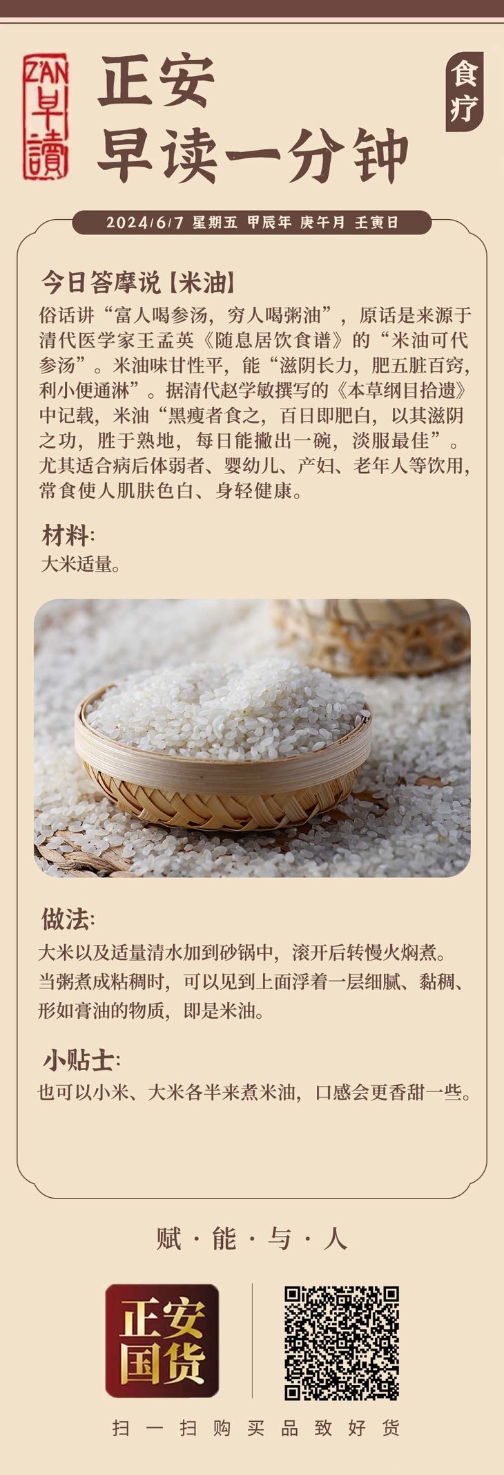6月7日 应季食方【米油】健脾和胃