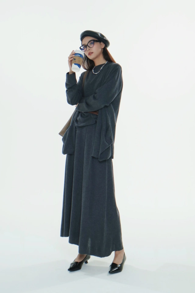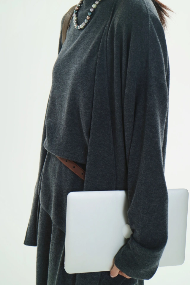 A:羊毛蚕丝面料保暖性强的同时具有良好的吸湿性与透气性,版型垂坠触感滑顺,质感品质