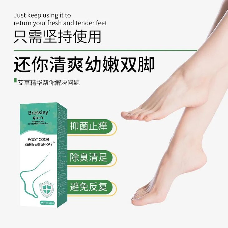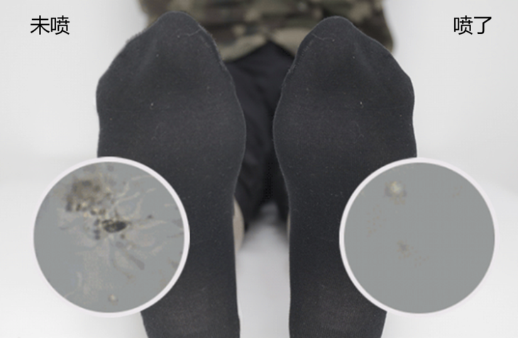 在喷上喷雾以后,有效成分在瞬间,清除了成百上千的细菌,脚臭、脚痒都消失不见了。