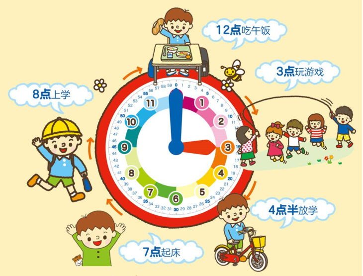 知道什么时间做什么事后,接下来就需要掌握看时间这一基础技能。