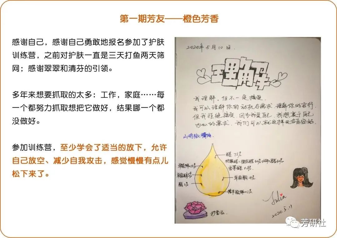 在芳研社购买过乳香和柑橘两种精油的小伙伴都可以直接加入训练营。没买过或买过一种的小伙伴,现在补齐即可参加。
