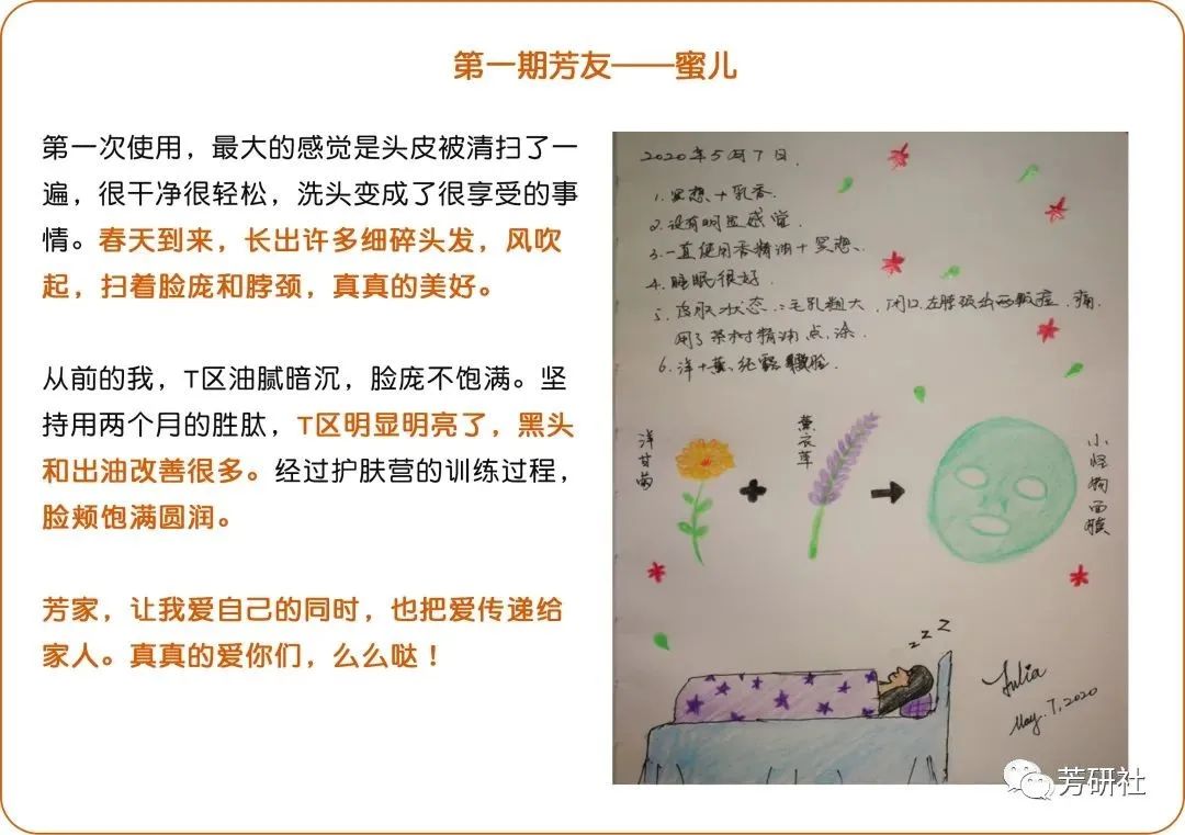 从品牌力的角度来说,最近非常荣幸地入选了深圳卫视辣妈学院的《专家创始人》节目,让芳研社这个品牌从触达几万人跃升到触达几百万人,并且有机会跟国内顶尖的综艺节目导演、主持人一起工作,也让我们收获很多,更是对咱们品牌的自信力大大提升。