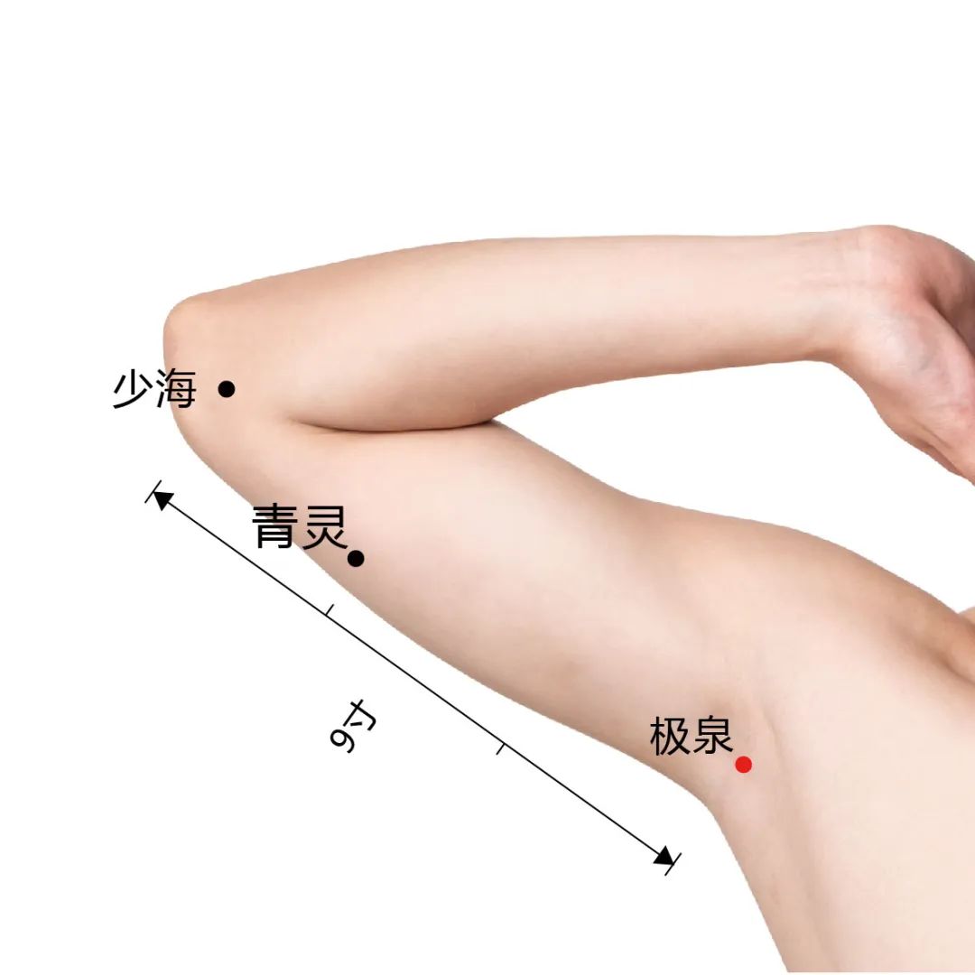 腋窝的极泉穴是心经的重要穴位,可以去心脏的郁火毒素,应常常去按揉,以疏通这口井。