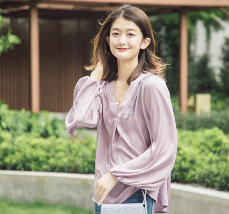 这款宫廷袖上衣穿起来好轻盈浪漫呀!它是宽松的版型与半开领口设计,尽显法式的慵懒与浪漫~这种紫是莫兰迪色系的,不挑肤色好搭配!面料是缎面聚酯纤维,有着细腻的丝缎光泽~