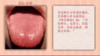 如果舌红少苔,腰酸膝软,头昏耳鸣,发脱齿摇,口咽干燥,失眠健忘等,可能是肾阴不足。如果在这个基础之上热扰心神,出现五心烦热、潮热盗汗、骨蒸发热等,多是阴虚火旺的表现。严重者舌红少苔,甚者无苔。