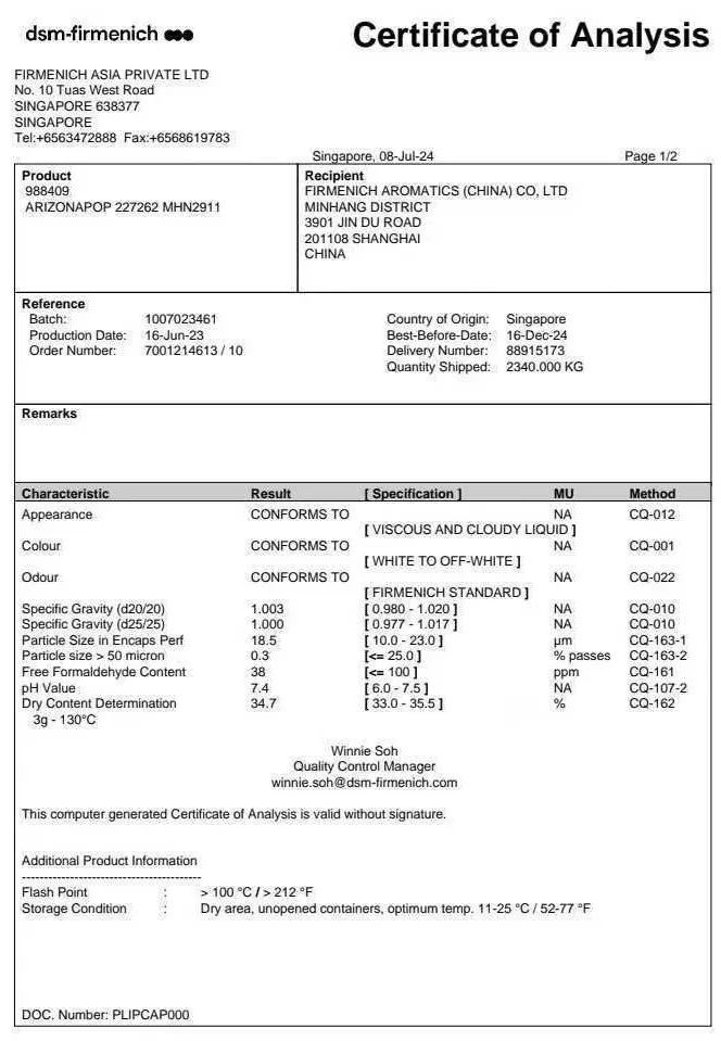 微胶囊香精可以沉积于织物中,干燥后,香味淡了可以通过摩擦触碰再缓慢释放香气。不是什么工业香,而是散发着淡淡的香味,味道很高级,非常好闻。