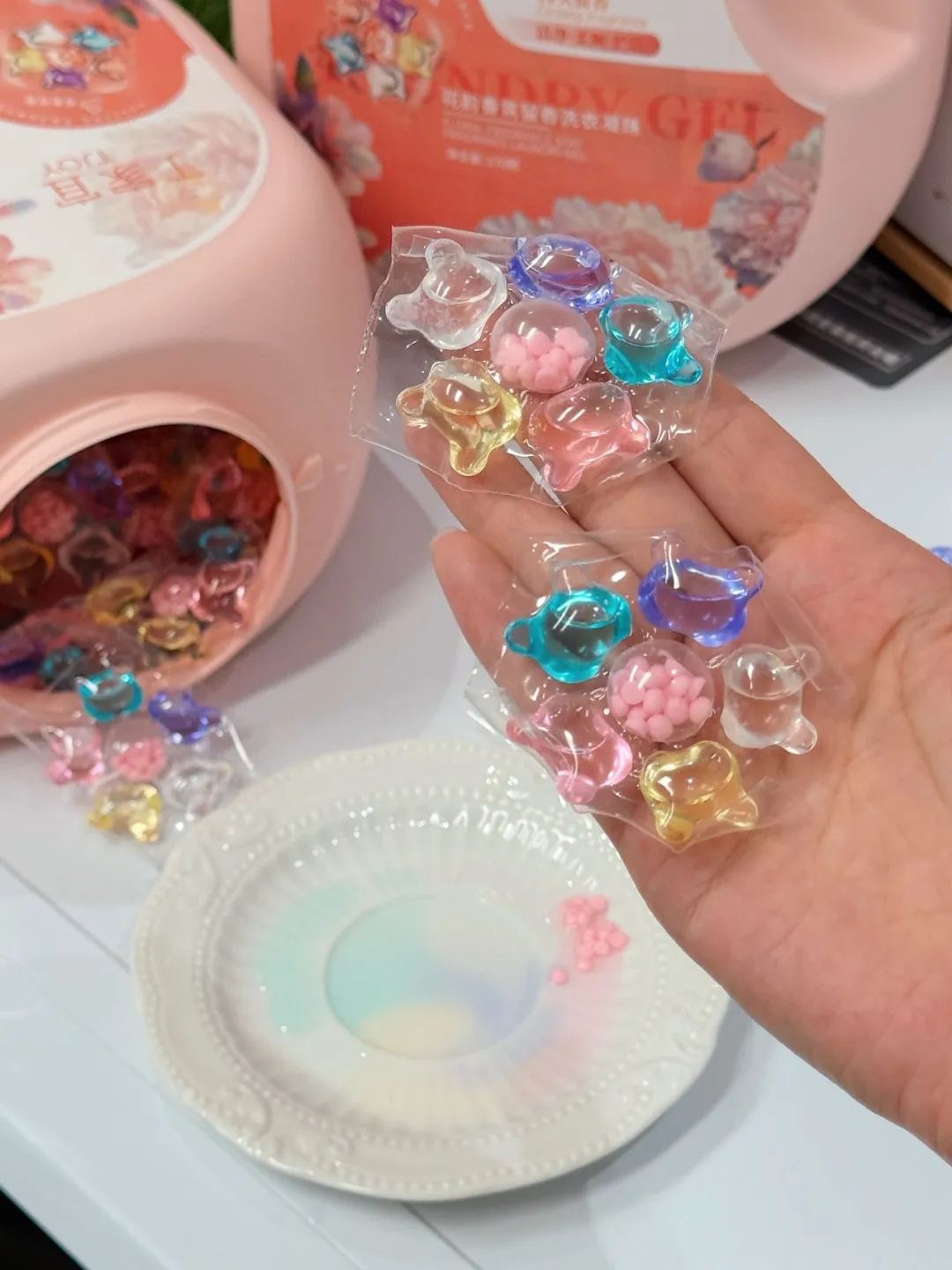 每次需要的时候取出一颗直接扔进洗衣机很方便,再也不用瓶瓶罐罐往里面倒了,简直就是解放双手神器!