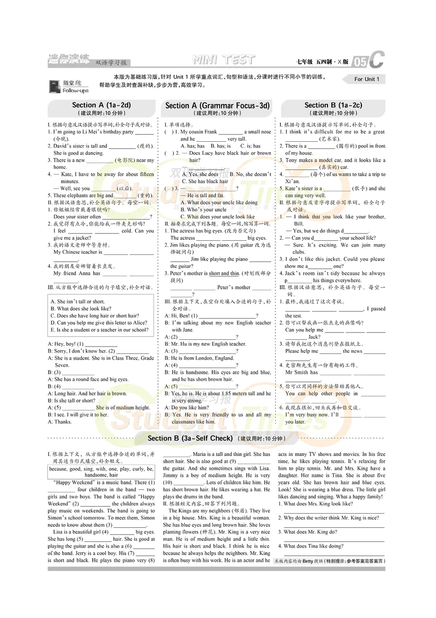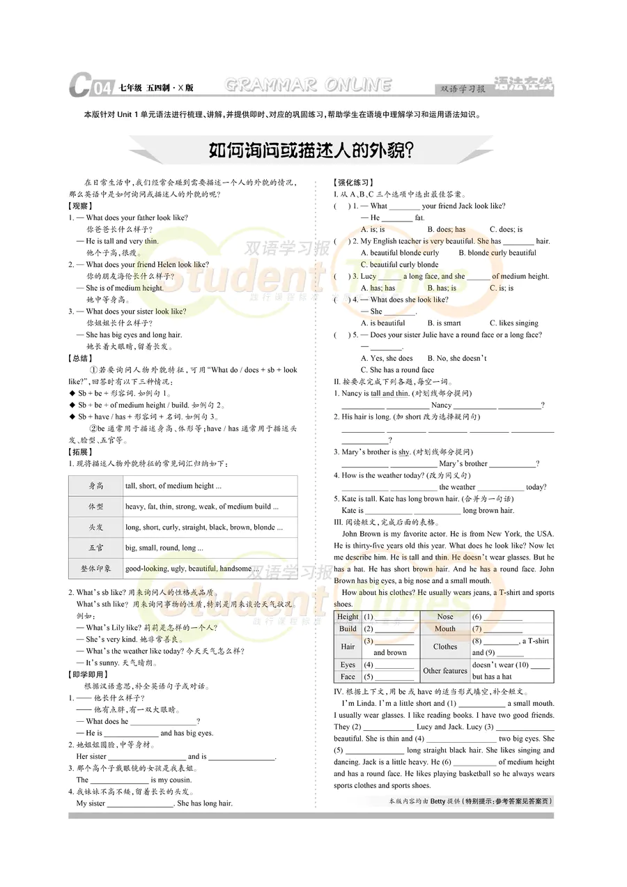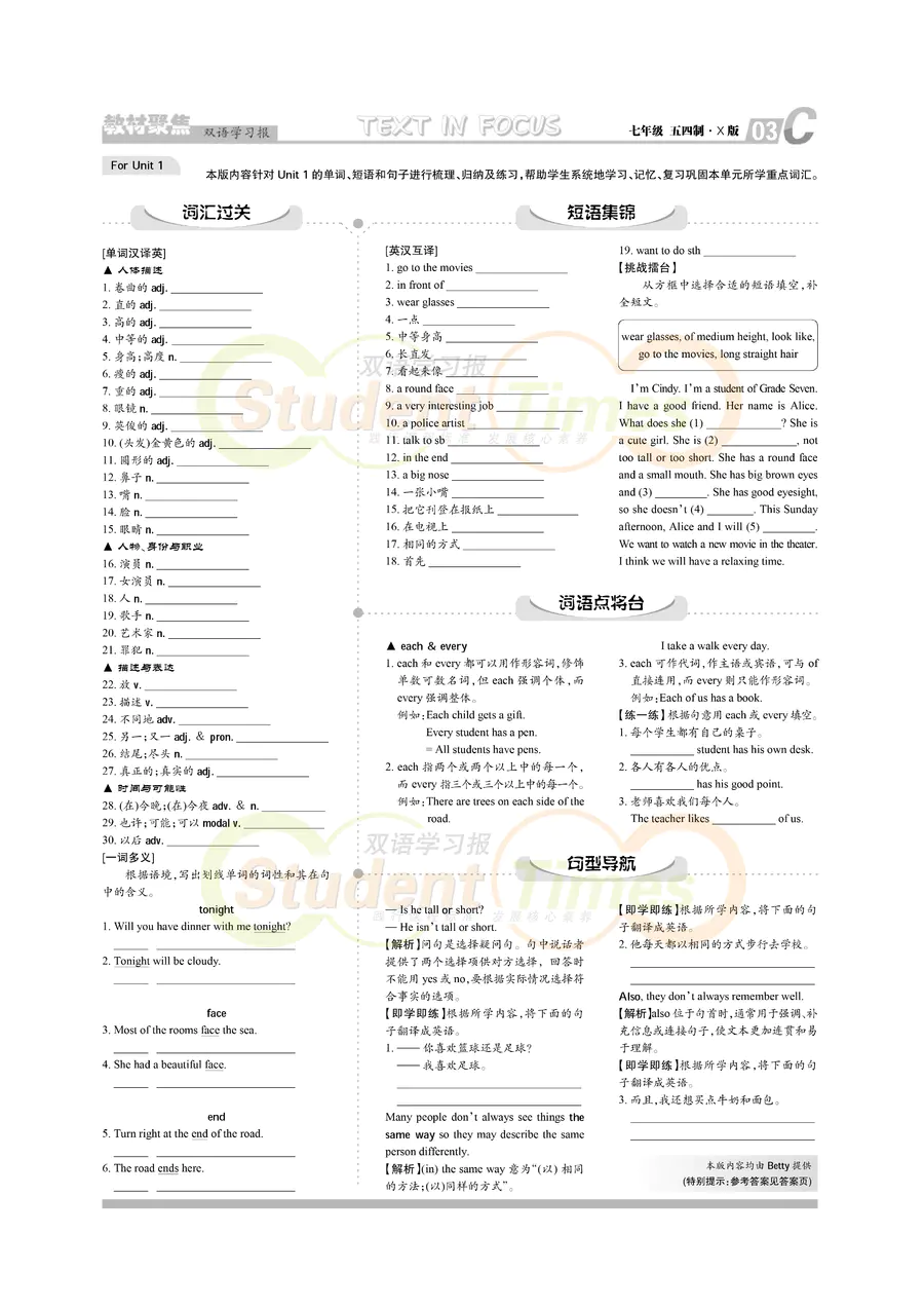 初中英语样报 七年级 五四制 X版 同步辅导 C刊