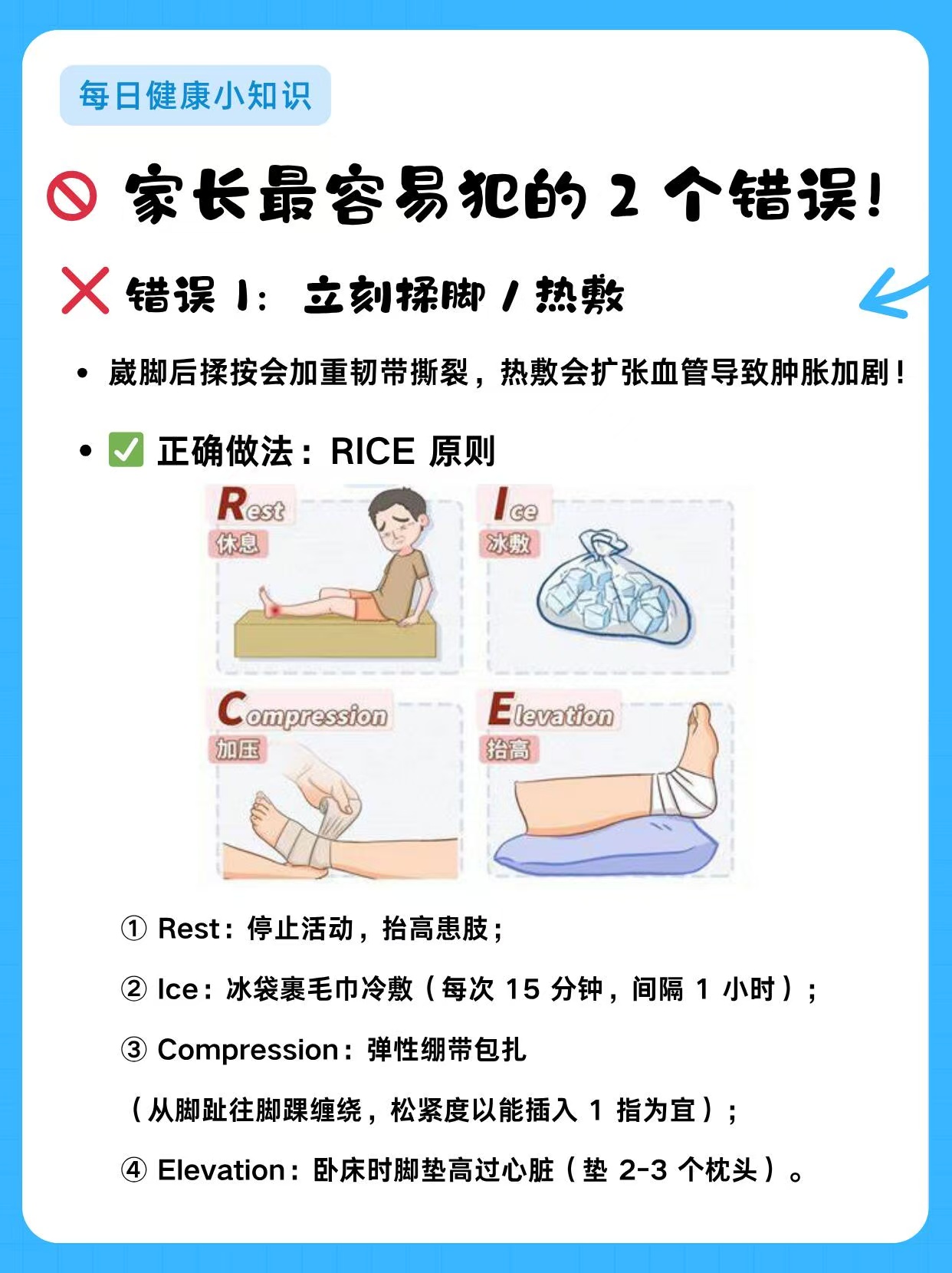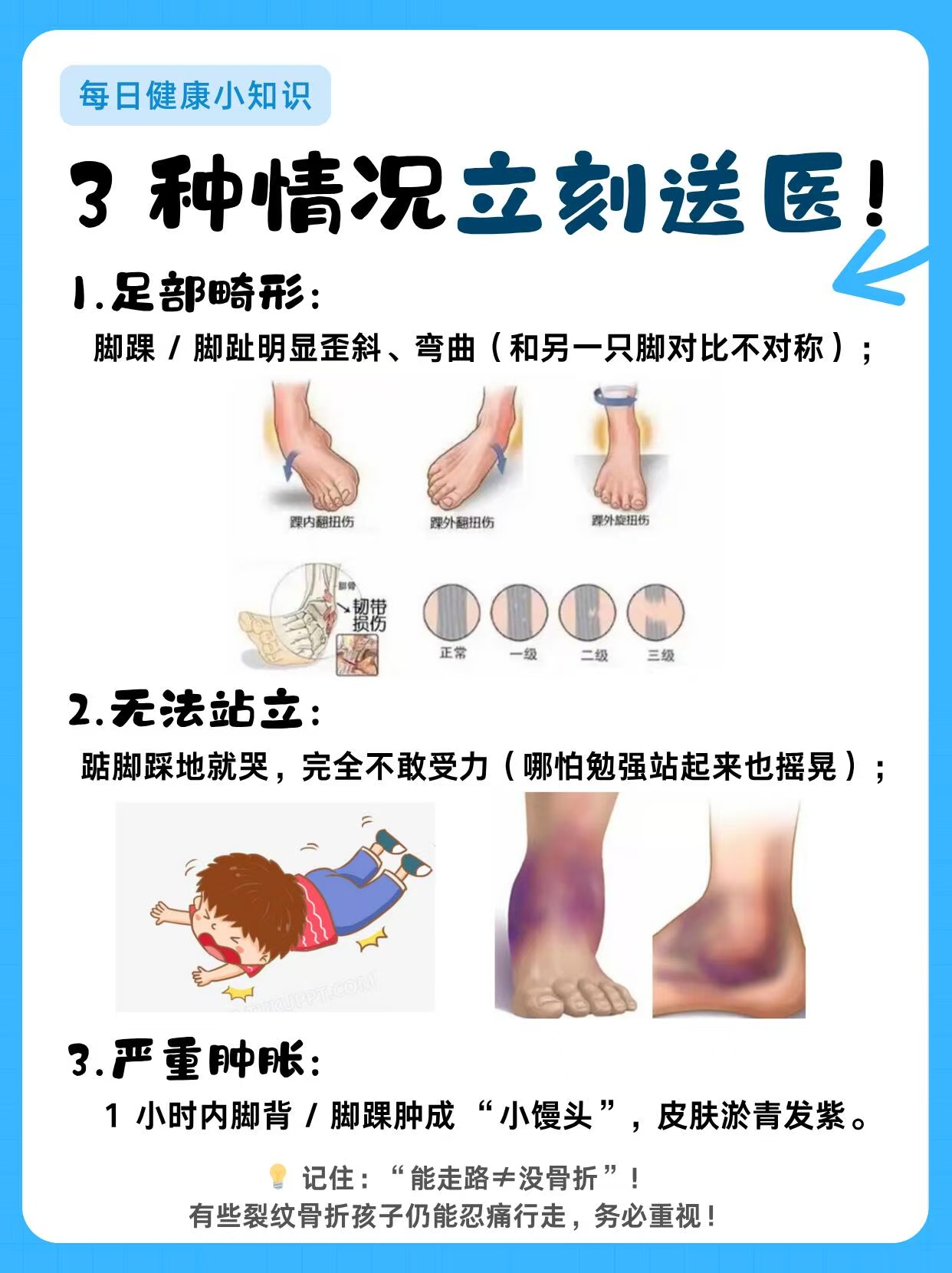 但孩子对疼痛的表达不像大人这么明确, 大多数家长第一反应是不是 “揉一揉就好”?大错特错!扭伤和骨折初期症状相似,但处理方式天差地别!所以父母家长一定要及时判断!提前学习急救处理,以防万一👇