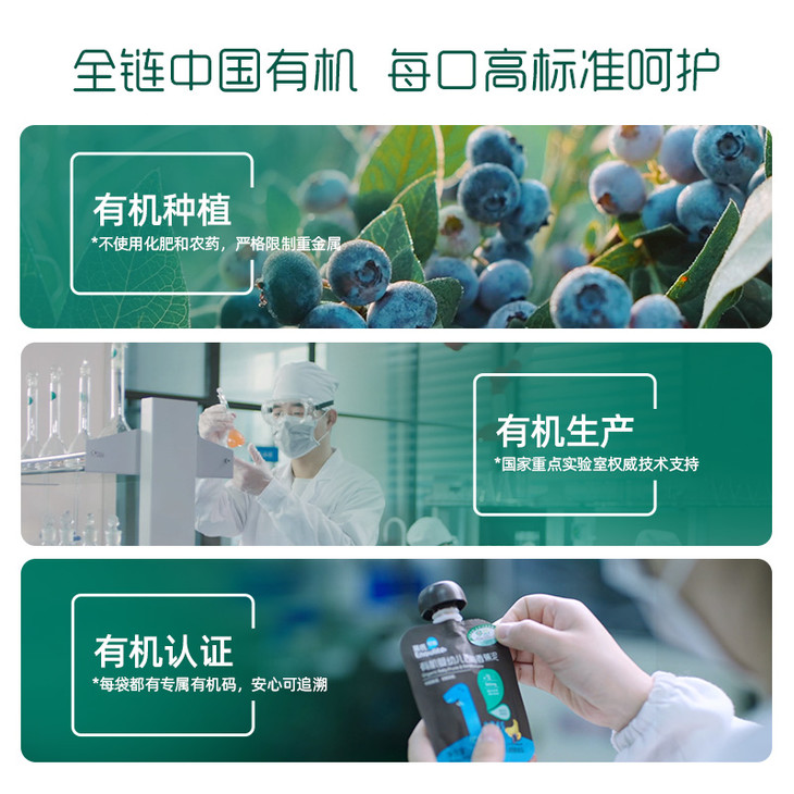 ②种植、生产等多个环节,全链有机可追溯,给宝贝吃的每一口都更安全、更放心。