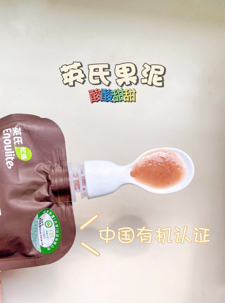 现在,我都给宝贝吃英氏的这款有机果泥。
