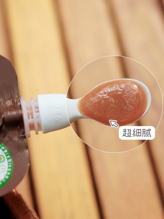④口感细腻,更适合宝贝娇嫩的口腔,宝贝接受度更高,搭配可装在包装袋上的果泥勺,几个月的宝宝也能更好进食,方便而且不容易弄脏衣服。