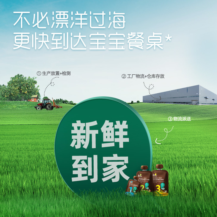 ①中国制造的这一袋果泥,不需要经过长时间的海上运输,宝宝吃到的时候更新鲜。