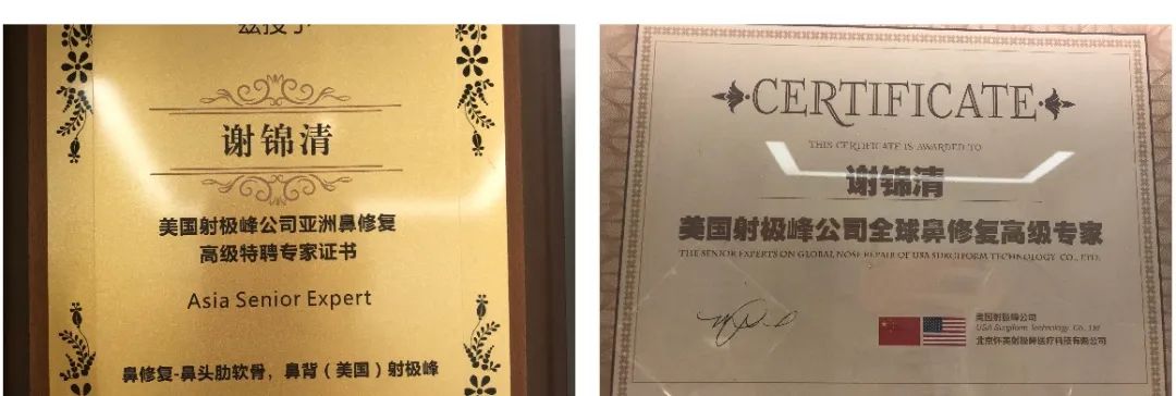 谢锦清院长,大学攻读美容医学专业,是国内较早学习整形美容的一批医生,自2000年毕业后一直从事整形美容工作,帮助众多眼鼻求美者获得美丽,收获口碑无数。多年对整形理论、技术及审美的提升,谢锦清院长眼鼻整形经验丰富、实力强,在眼鼻修复方面更是取得颇高的造诣,先后在国内外核心期刊杂志发表过《“三点式”睑板前眼轮匝肌间断切除重睑术》、《隆鼻膨体假体雕刻中的五个角度》等10余篇论文,拥有一种双眼皮成型器(ZL 20172 0706825.4)眼部整形专利。谢锦清院长还曾参加芝加哥高级鼻整形会议、中美鼻整形国际巡回峰会、美国达拉斯和奥兰多鼻峰会,并作为西南区五官精细整形代表,受邀参加中韩学术交流会,与国内外优秀整形专家切磋交流;是西南鼻修复临床研究基地高级特聘专家、首尔大学附属医院特邀眼部技术顾问、美国射极峰公司亚洲鼻修复高级特聘专家、中国整形美容协会鼻和眼部整形分会委员。