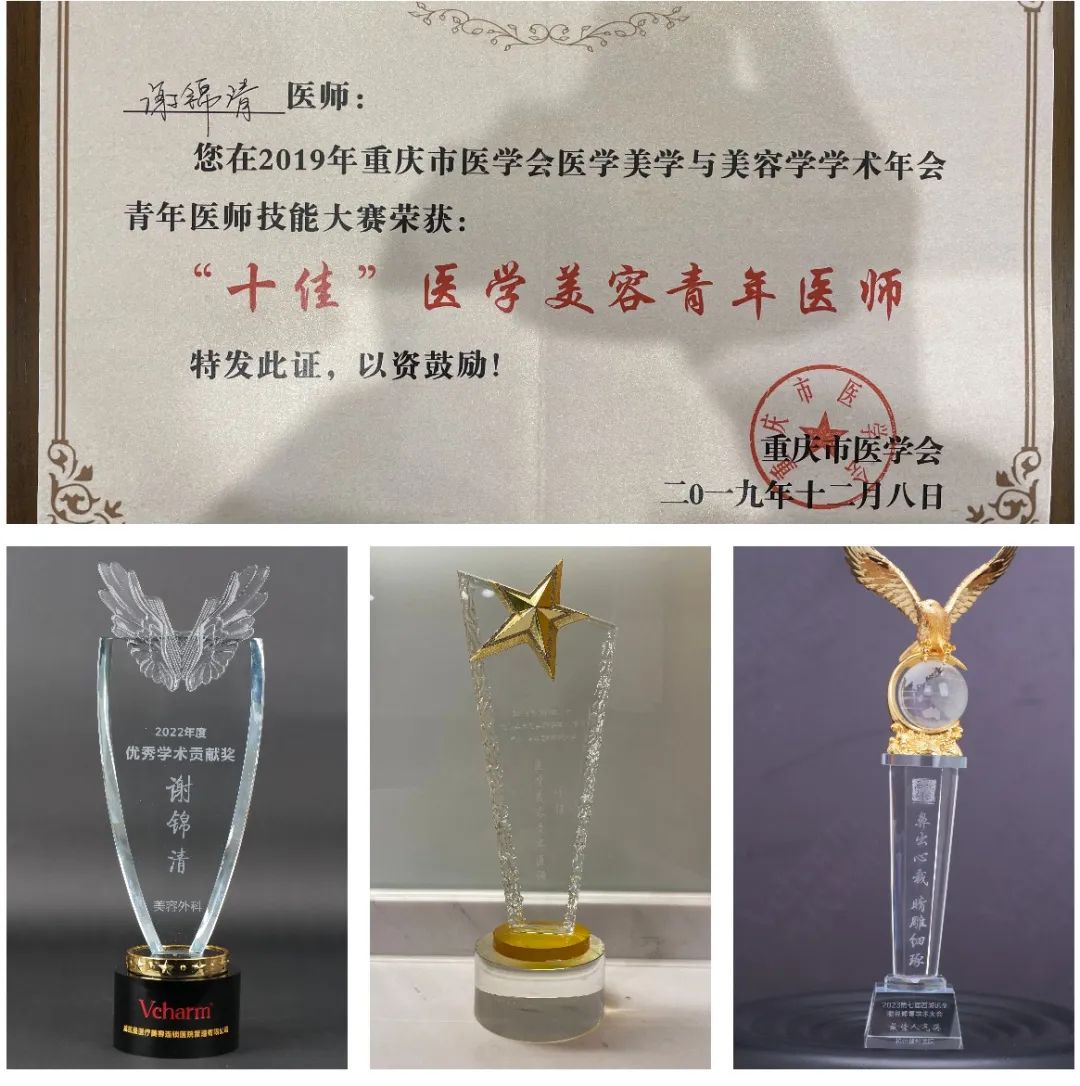 在整形领域里,谢院长是“阿尔法美眼”大中华区首席培训导师、“埃菲尔美鼻”精雕学科带头人,不仅在重庆市医学会医学美学与美容学学术年会荣获“十佳”医学美容青年医师、青年医师技能大赛“优秀奖”,还在西湖论剑眼鼻修复大会获得鼻修复最佳设计奖、鼻修复手术演示最佳人气奖等各类整形大奖,超强实力得到业内医生专家的认可。
