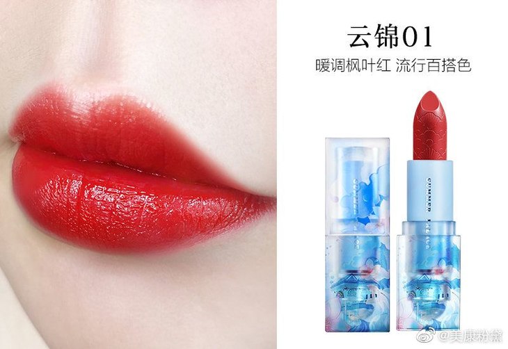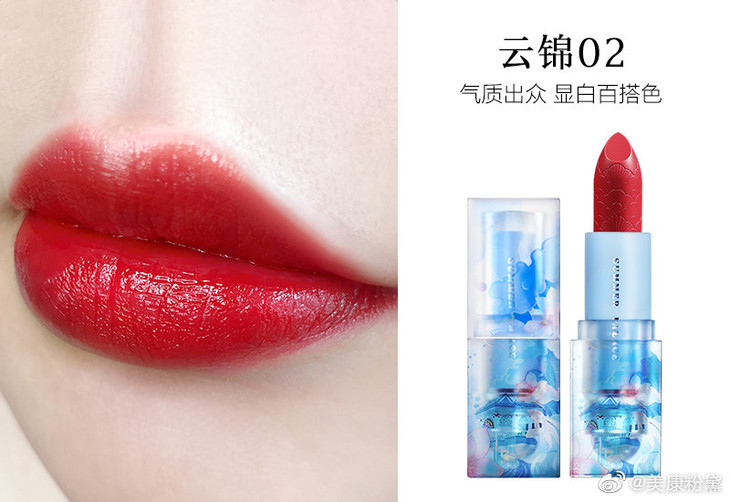 厚涂红润明艳,上唇很显肤白
