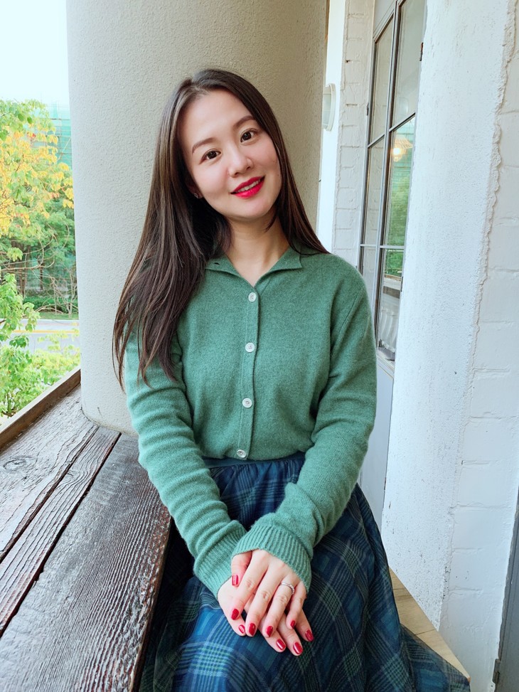 独特的森林绿邓肯羊绒,搭配同色系格纹纱裙,温暖又活泼,太上镜了!