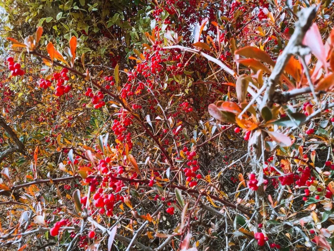 第六天也比较轻松,因为坡度已经很小了,而且今天中午就能出山了,就这样一直走着走着会看到一片挂着火红色果子的树林,其实这些是野生的沙棘,维生素的含量非常高,是一种高级的滋补品,当然我们也都品尝了几口,酸但很美味。