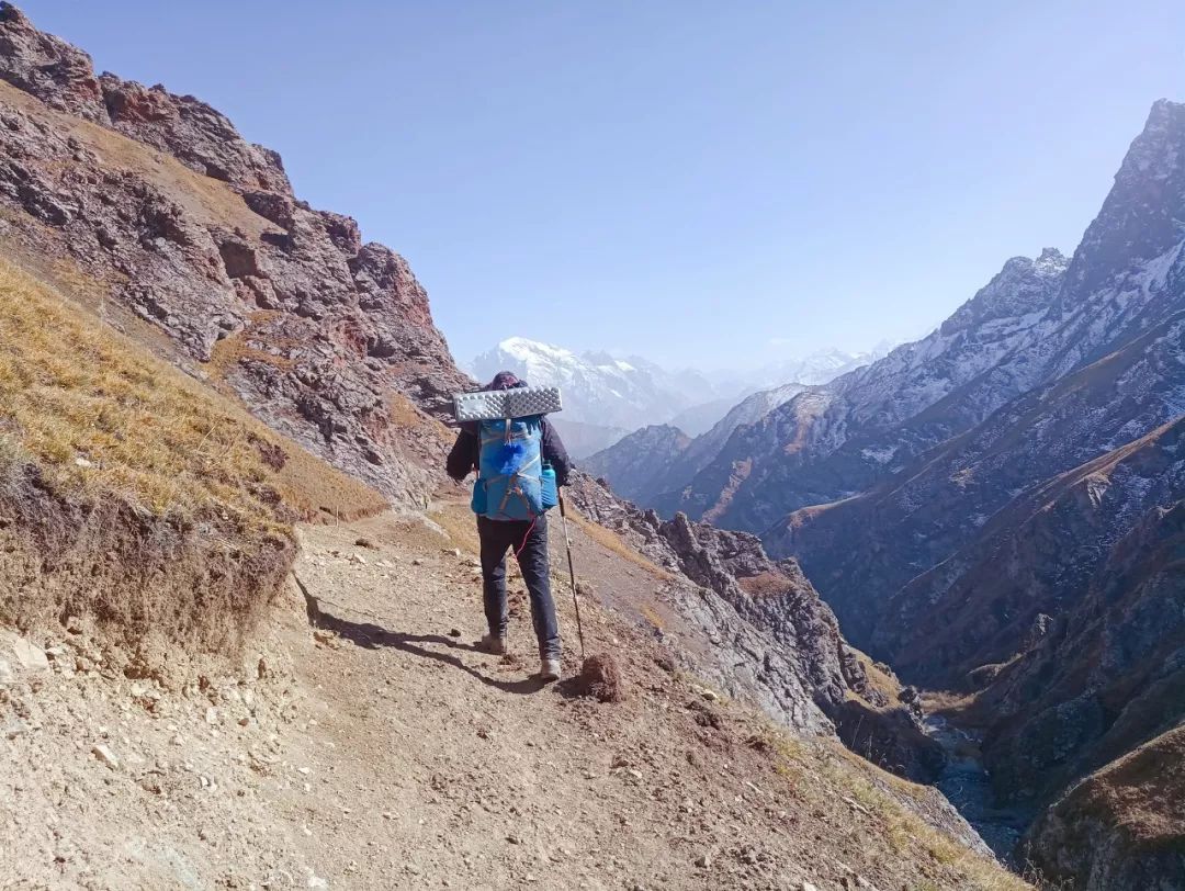 主要拔高在第二天和第四天,也就是翻越两个3800米的垭口那两天,这两天的强度是最高的。因为你背的东西多又是在高海拔,所以难度和低海拔还是有很大的差别的。