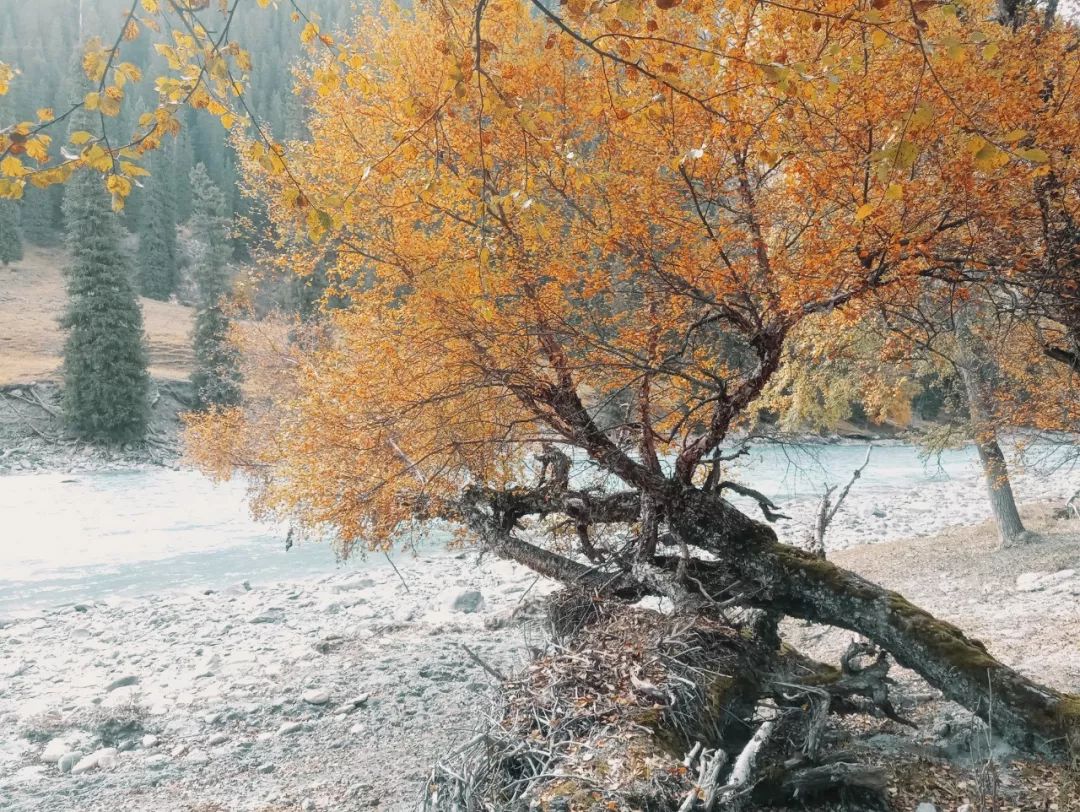 因为河水中又矿物质的关系,河水乳蓝色的,配上我们去的季节正是胡杨林树叶泛黄的时候,那个纯净的蓝、纯净的黄和雪山的白交相辉映,大家可以想象下这样的美景。科克苏河如果大家看攻略,你会发现已经多走过好几条驴友的生命,因此过河得格外小心。