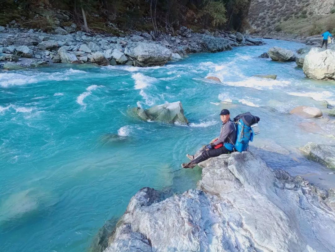 有人问乌孙难吗?单看拔高还行,但是还要过冰河,湿脚过冰河,而且全程要过超过50条的冰河,平均水温低于5度,我当时用随身带的温度计测量温度是2度。这种冰冷刺骨的感觉只有自己走过才知道。