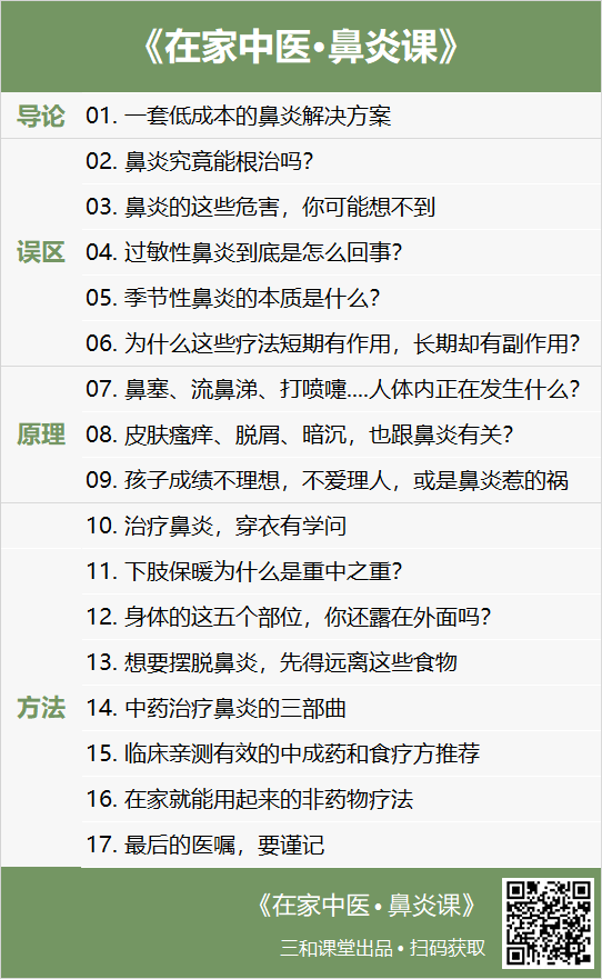 中医爱好者:想通过鼻炎病症了解和学习中医思路的朋友