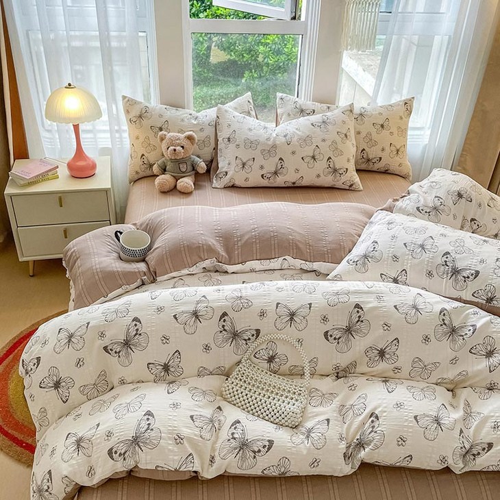 文案:入冬后换上一套好看又好睡的四件套,云纱棉面料一年四季都能盖,A类母婴级不含甲醛,裸睡也安心 ❤️