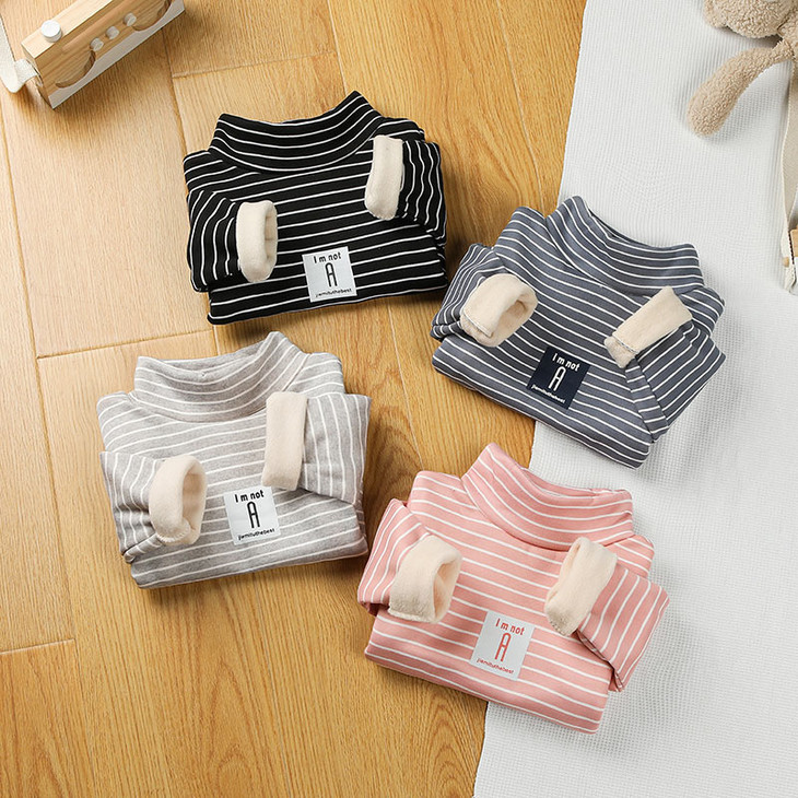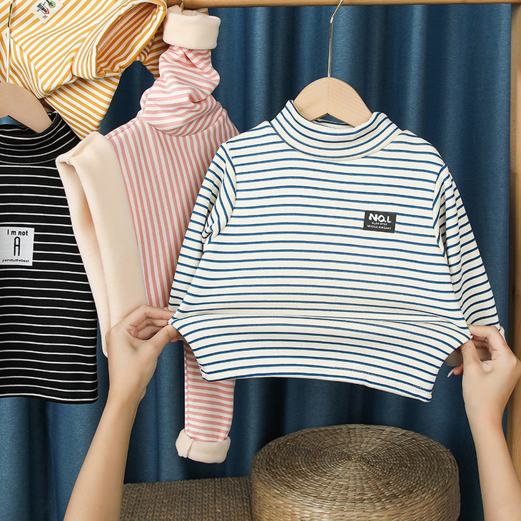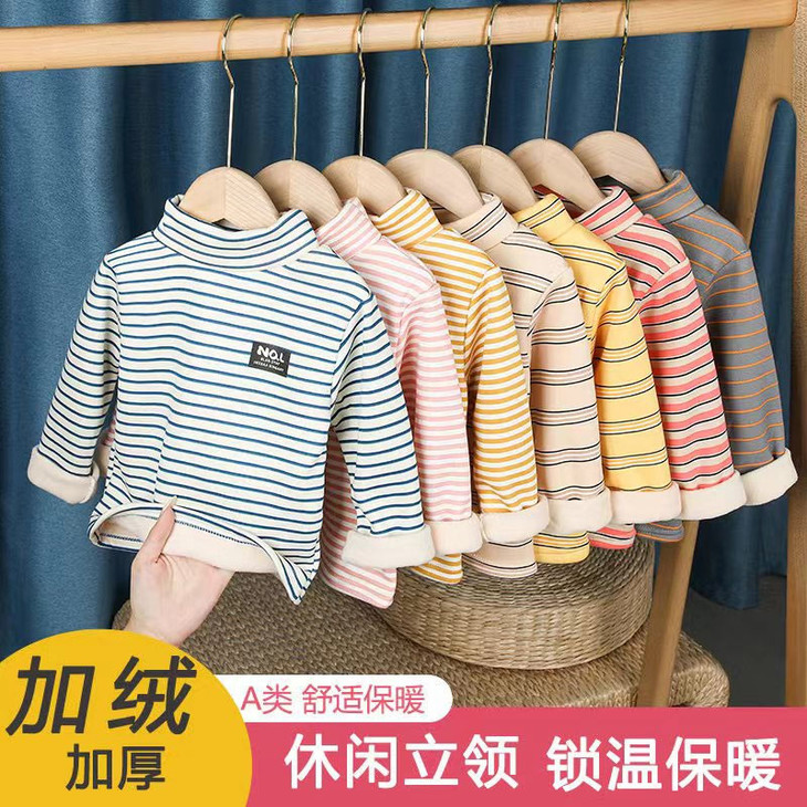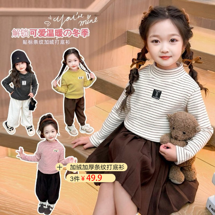 文案:49.9/3件!可叠穿可单穿的宝宝打底衫 ✌️ 面料细腻软糯,内里加绒摸起来超舒服,高领设计再也不用担心宝宝冻脖子啦~