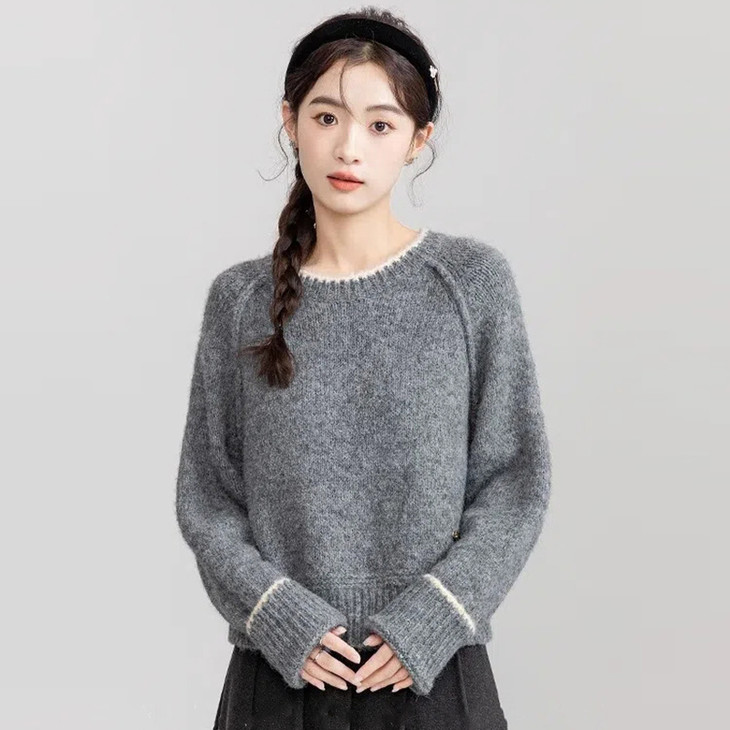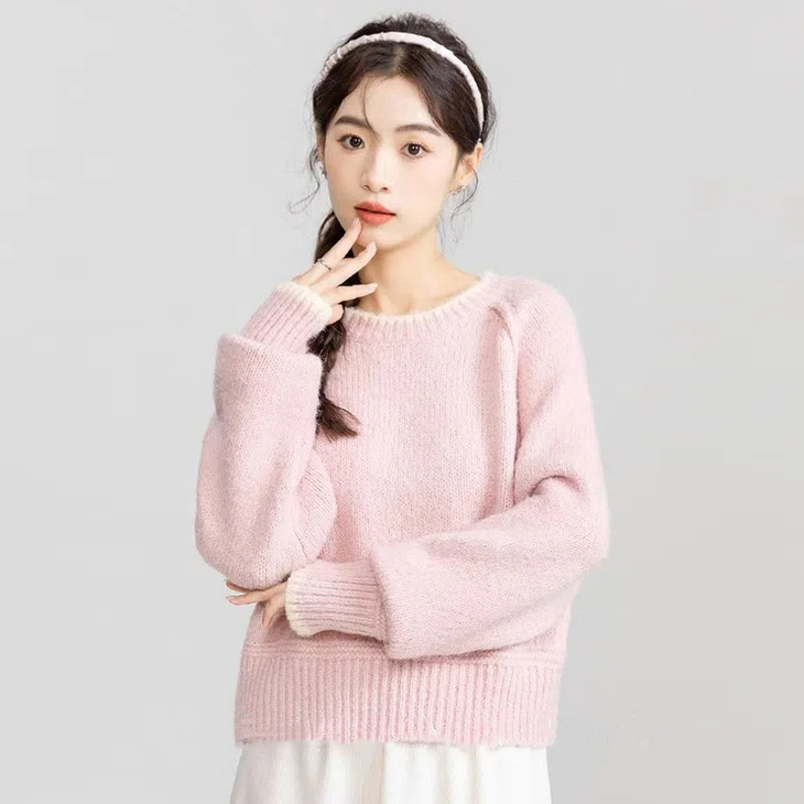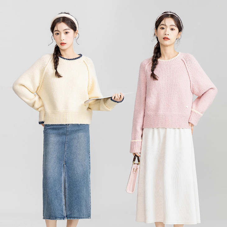文案:冬天对软fufu的毛衣没有任何抵抗力~领口、袖口撞色设计视觉上很有层次感~糖果般的色彩🍬让这个秋冬不再单调~