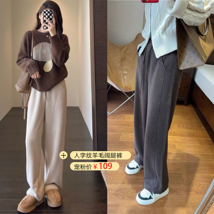 文案:冬天不要一味追求厚 ~穿出轻盈舒适的羊毛裤,有垂感又有质感,既能保暖又兼顾了优雅与风度,小个子也能穿出大长腿!