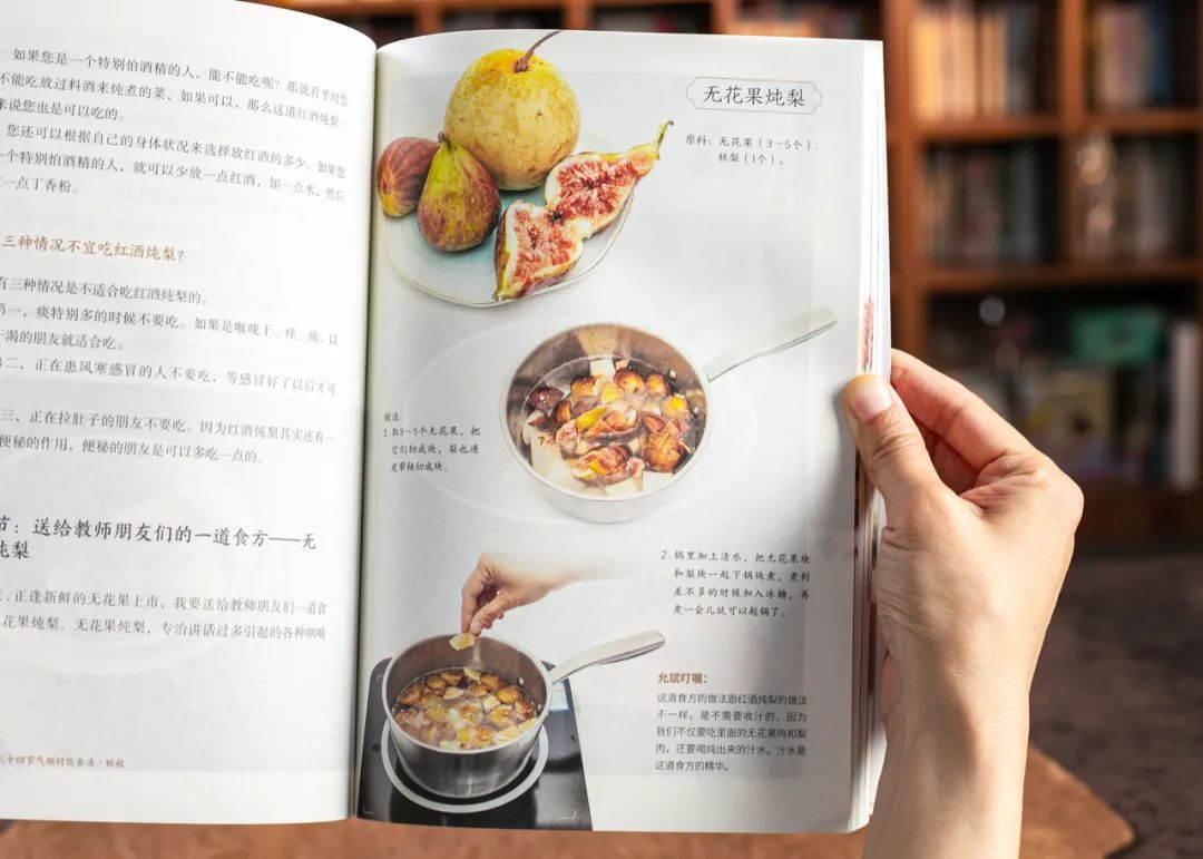 不仅如此,陈允斌老师还给出了一道「无花果炖梨」的食方和功效。