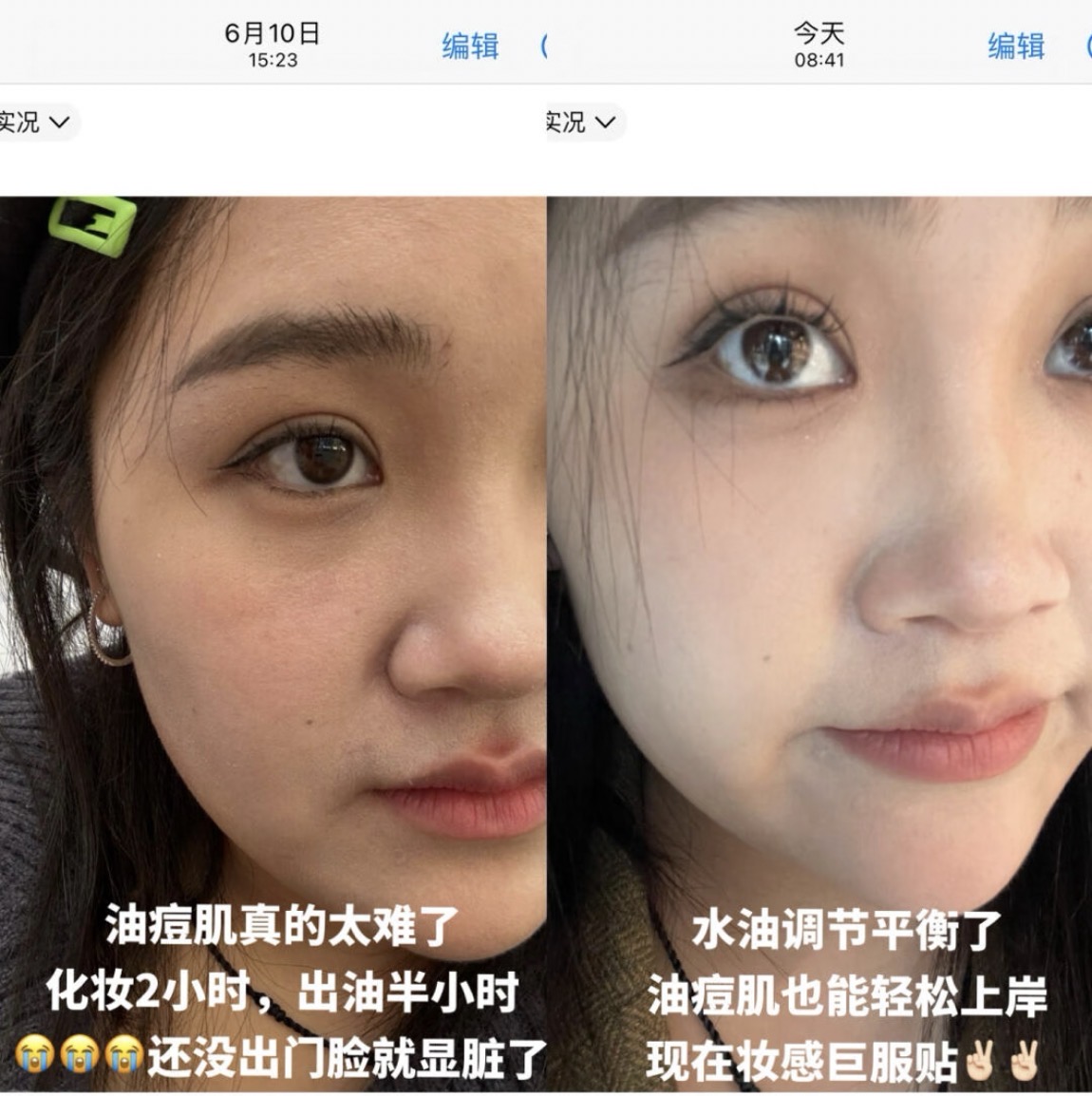 质地清透到飞起,精华水拍开秒吸收,修护乳一抹化水,完全不给闷痘机会,清爽到想哭😭