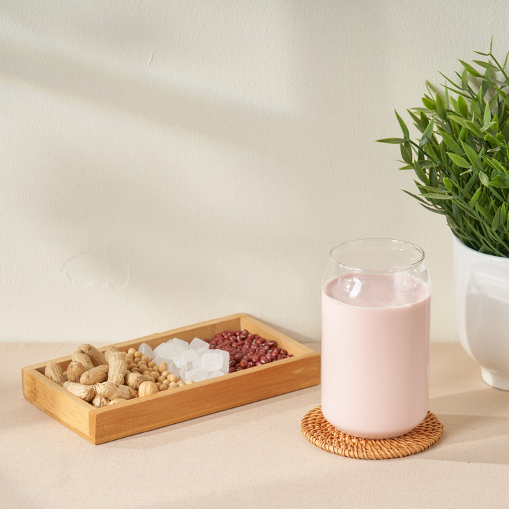 1、将黄豆、花生、红豆洗净放入杯体,再 加水至1000mL水位线。