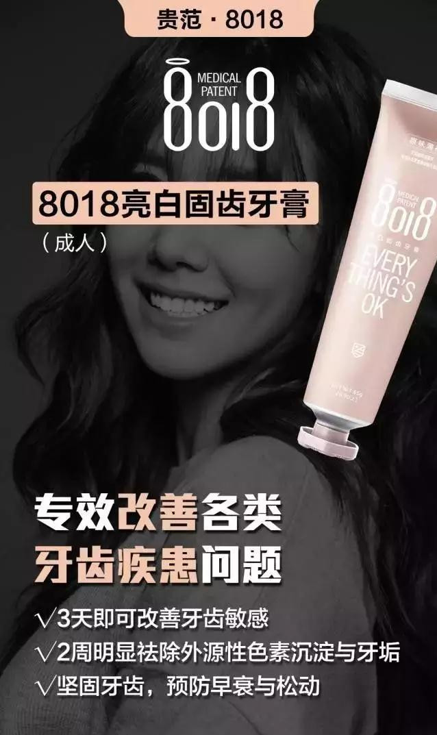 8018亮白固齿牙膏:针对口腔硬组织的改善和修护,主要功效是通过修护牙釉质面,从而达到提亮牙齿的效果,同时缓解牙齿过敏, 坚固牙齿。