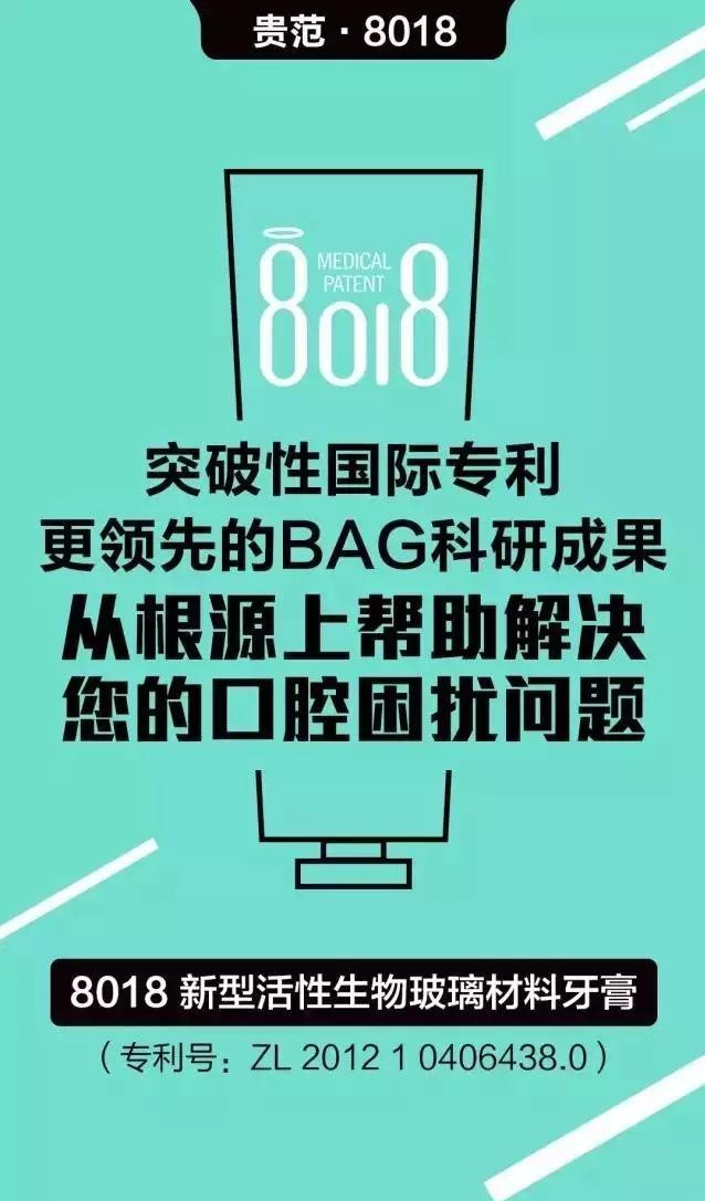 2012年,科学家石道林先生申请了新升级配方的活性生物玻璃材料应用于口腔领域功效的国家专利,经大量补充试验,在2016年1月获得国家专利局的认可,获得专利证书,代名“8018专利”,标志着中国专利牙膏——新型活性生物玻璃牙膏8018正式问世。