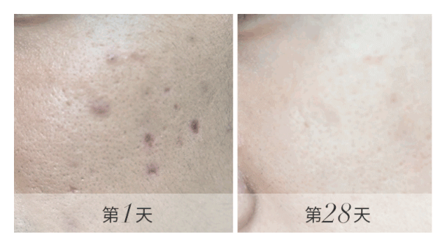 用到28天,就比较明显的能看到,痘印几乎都看不到了。而且皮肤也提亮了很多,没有之前那么油腻暗黄了。