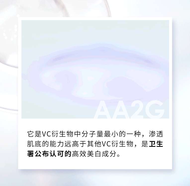 核心成分是纯度高达99%的AA2G(抗坏血酸葡萄糖苷)。