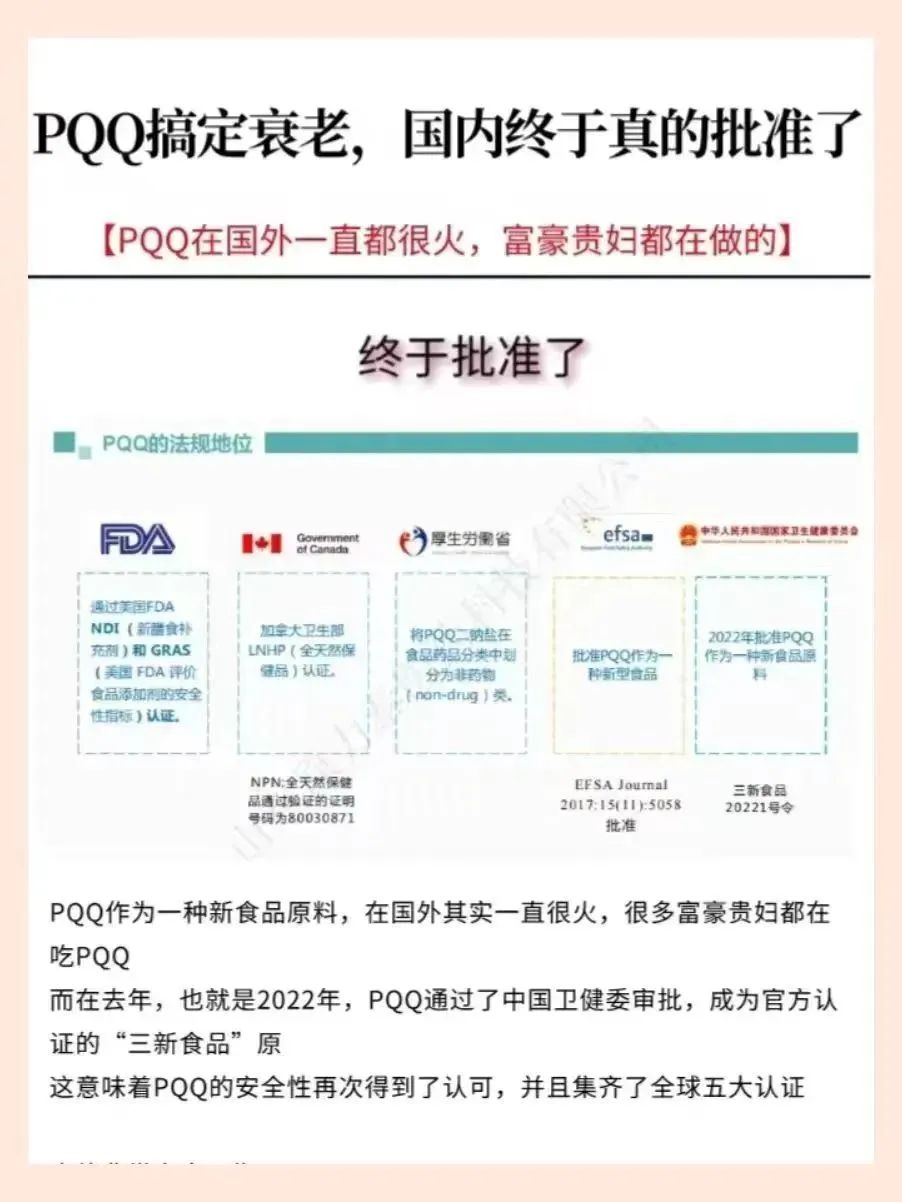 2022年3月,PQQ也获得了中国“三新食品”原料认证。