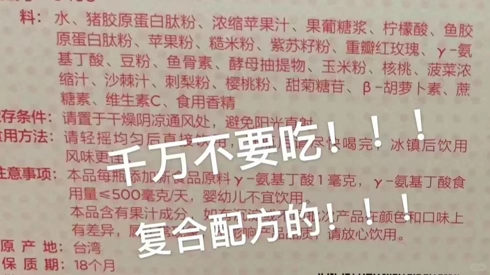 我之前试了不下10种胶原蛋白饮,打着胶原蛋白的称号,实际只有一个胶原成分,其他都是充数的,卖得还不便宜。