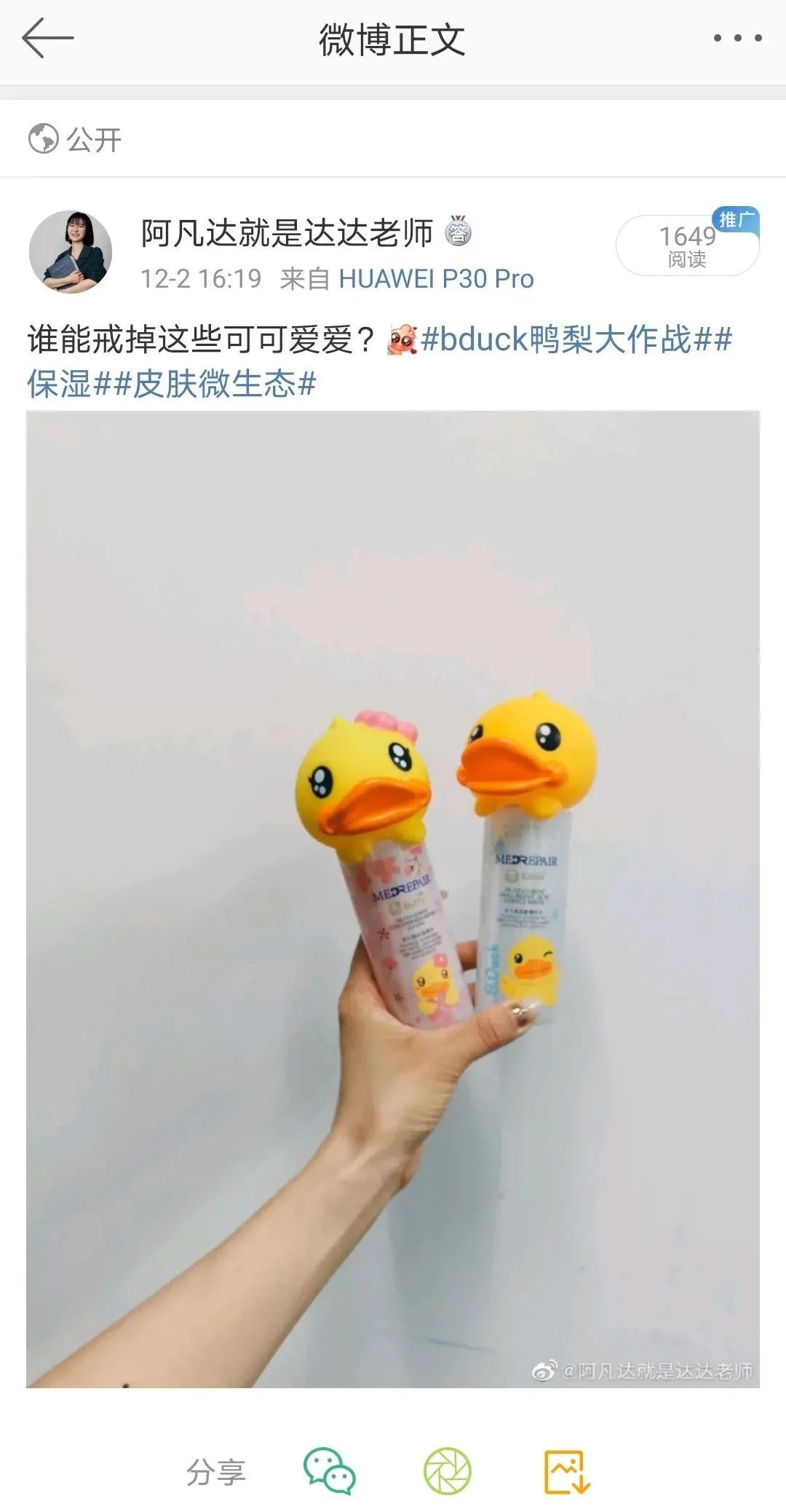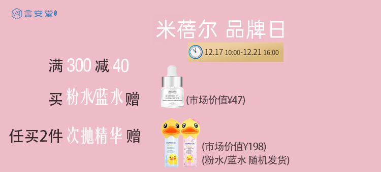 限量米蓓尔鸭鸭水:之前我在直播里跟大家讲过,水剂类的产品,一方面润泽角质层,另一方面也会有一定的促进后续产品吸收的作用,如果是添加了有效成分的水,可以直接当做一个清爽的水精华来用。