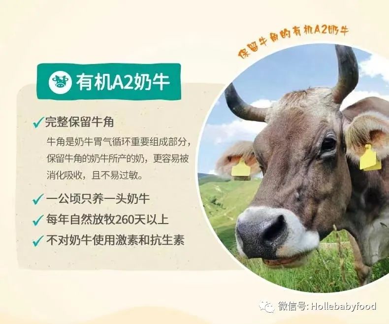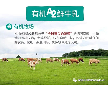 1、甄选有机A2奶源,贴合母乳,更亲和人体,宝宝更易消化吸收:Holle有机A2奶源通过DNA技术甄选,全部来自纯种有机A2奶牛,有机鲜牛乳中只含有与母乳一致的A2-β酪蛋白,亲和易消化,更易吸收,减少不适与过敏可能;