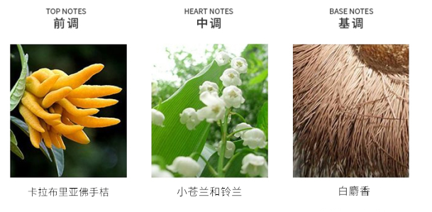 香调主要是小苍兰+白麝香,加上柠檬和柑橘的点缀,清新花香中交融了活泼俏皮的气息。