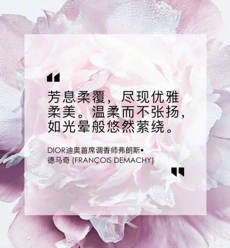 它属于一款柔美花香调的香水,使用Dior专属农庄的花原料,调制出迷人馥郁花香。