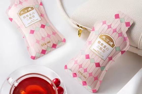 天方健胶原蛋白三肽饮,每袋富含7000mg胶原蛋白肽,“高科技”“高紧致”“高吸收”三效合一,助你打破皱语,解码年轻肌密!