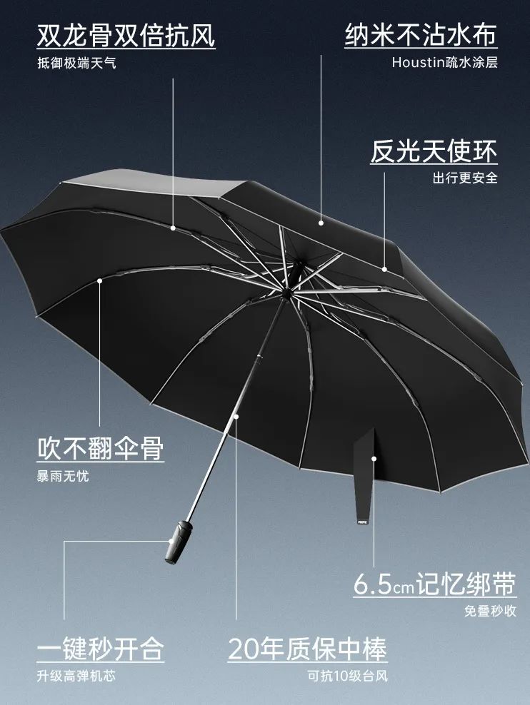 全自动开合,秒开秒收,出地铁、车门无缝衔接,拒绝淋湿头顶!